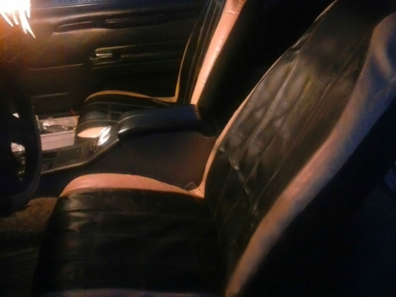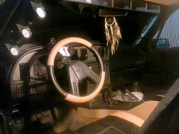 When I got her home, I began the build on it. I replaced all the struts, poly bushings, tie-rod ends, sway bars & support bar supports. New tires, changed the oil, plugs, and many smaller things. I saw a long road ahead trying to locate so many missing items that this car didn't have. I went to our great local wrecking yards, found and replaced the entire interior from tacky blue to black. This also included carpets and some cool bucket seats. I repaired the damage in the front right of the car, pulled out the bent stuff to factory specs, replaced the damaged bumper, and installed a fiberglass front end. None of the lid covers, like the trunk lid, engine cover; front hood storage lid would open with the cable pulls. The front hood latch was completely missing, hence the ugly hood pins, trunk carpets missing, broken windshield... the poor girl was just a mess and begging for repairs. The good things about this car were very good. It is fun, fast, good gas mileage, no dripping or burning oil. These good things just motivated me to bring her back up to her potential.