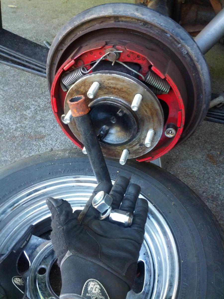I was bemused to discover that the shop didn't properly tighten the nuts one of the rear wheel of my 1984 D50 this afternoon (after hearing the hub cap clinking a bit). When removing the wheels, one of the nut, which was incorrectly tightened by the shop, sheared off.