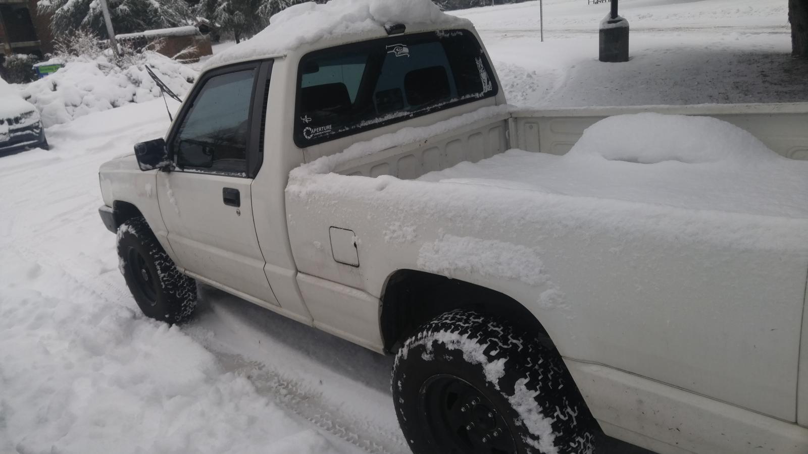 I have a 1989 Power Ram 50. 5 speed manual, 4x4, G54B, standard cab. She has her quirks and quite a few dings, but no rust. She'll do this thing where if I brake a little harder than usual, the engine will start to stall. She also has a bit of an erratic idle in the mornings. Used to get a good 20 mpg up until about 3 months ago. I only get about 10-11, now. Not quite sure why. The previous owner did a lot of jerry rigging and made several mods of his own. The first thing you see when you pop the hood is the wires. They're everywhere. Most go to the aftermarket stereo system, subs, and bass he put in behind the bench seat, and the rest I can only assume go to the light bar he screwed into the front bumper and the electric radiator fan. They'll be a nightmare to re-do and re-organize when I eventually decide to. I may end up removing the electric fan and re-installing the one driven off the belt. The second thing you don't see is the vacuum lines, most of which he "deleted", and not very well. Long story short, she's going to require a lot of TLC and maintenance to get her back to looking like new, but I'm up to the task. I'm going to start by replacing/repairing the exterior and a nice paint job. After that it'll be either a diesel or V8 swap, followed by the interior.