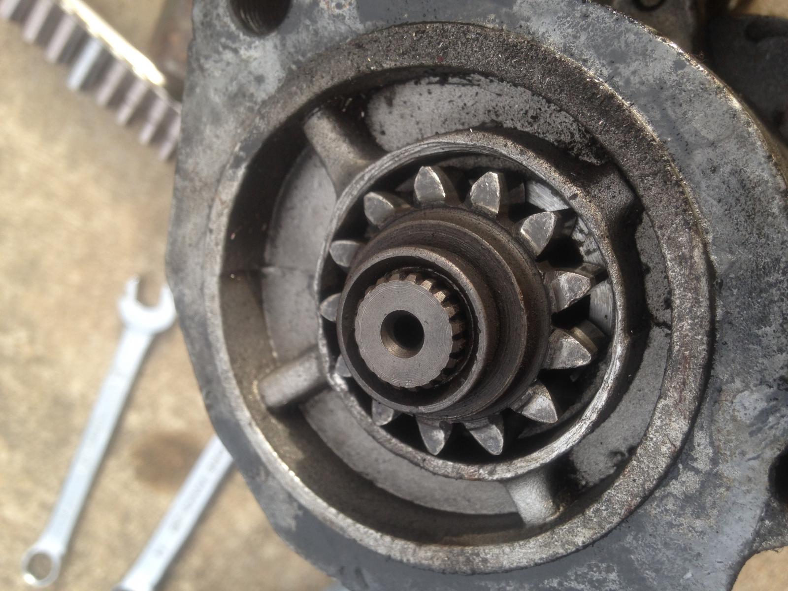 that was right before it gave me nothing. Required some starter fluid sprayed in the intake to start. Then I relished the valves and the starter was whirring. I took the starter off, the shaft is pretty jiggly, and the face of it had some damage, fly wheel looks okay, little bit of shavings in it. I went and pulled the starter from the salvage and the tooth count is different. I'm looking at trying to take the shaft and gear from mine and put it into the other, or try and get it rebuilt, or order remanufactured from oreilley's. Right now I am getting pretty deep into my budget on this thing. I dunno if I am just fucking up or what but today sucked. Thought I would be running it through valve lash procedure and taking it in for an alignment today. Instead I got that video and then nothing.
