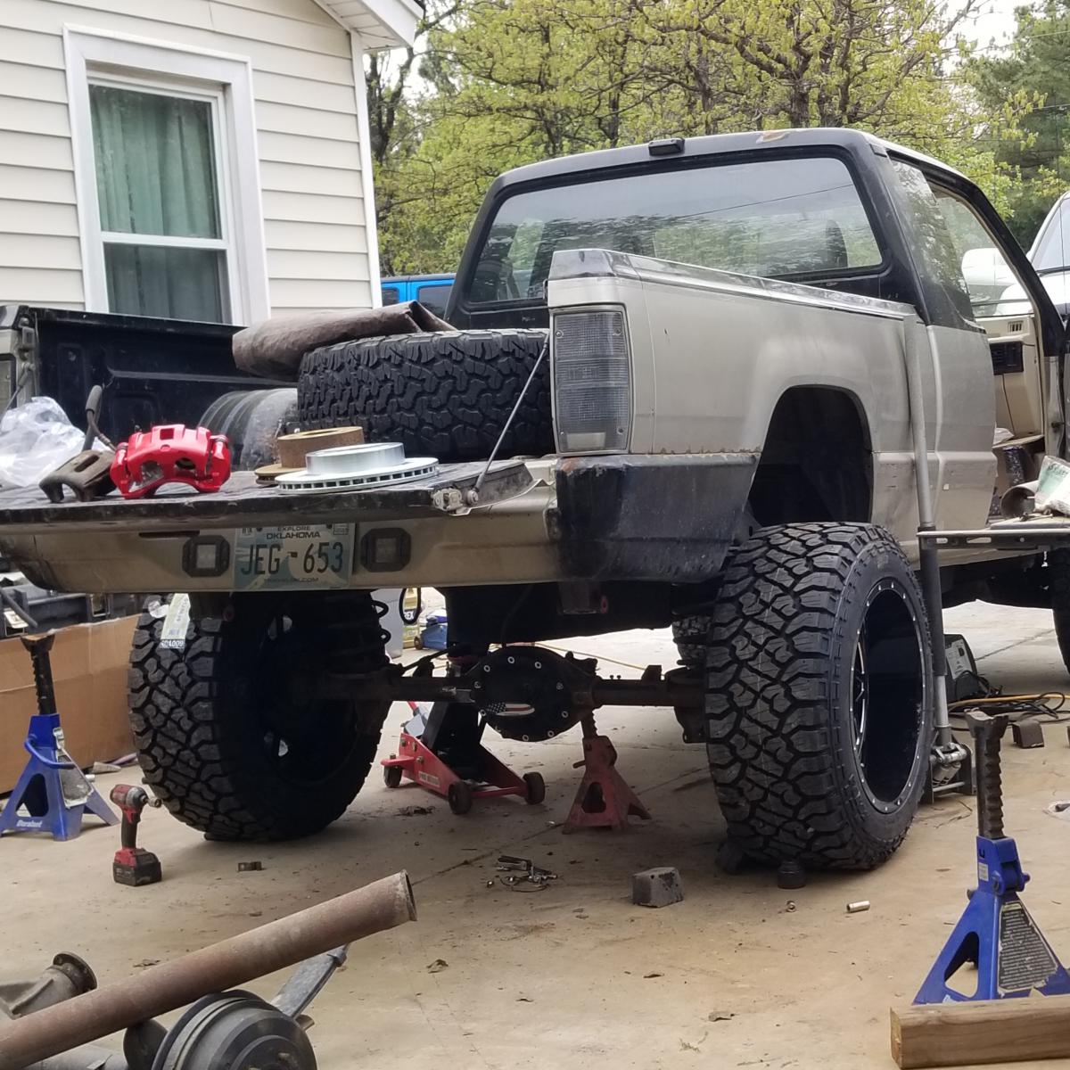 Well it's been awhile since I've posted anything, you guys helped me threw my 4d56 swap! Now I'm back at it going to finish every thing on the truck now. I've put almost 7k miles since the swap an I love the lil diesel. Now for the good part...I got my hands on a set of tj jeep axles! I'm in the process of changing the gears to 4.88s, I'm doing away with the control arms and using front and rear radius arms off a land rover. I salvaged up wj front knuckles and rear disc! Still in the beginning stages of the build, i am so stinking excited I had to go ahead an start my post! I will start some photos tomorrow, forgot about having to take pictures sideways....