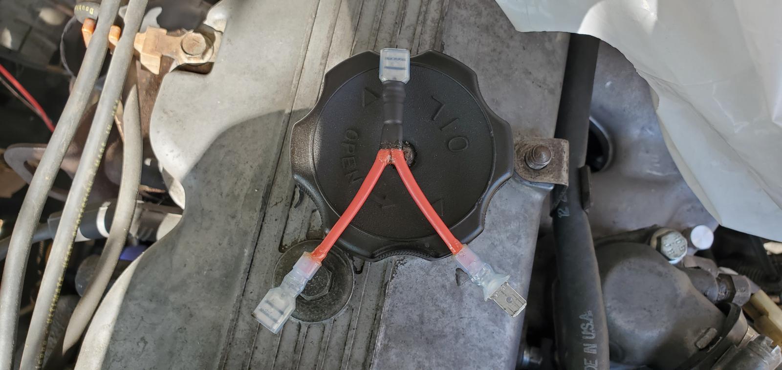 So far, the "P" (Power) terminal is hooked up and "S" (Starter Solenoid) are hooked up. I just need the "I" (Ignition) terminal hooked up. Everyone says to hook it up to the existing fuel cut off solenoid that's hanging around in the truck. Although there is other connections hanging around as well. Here is a picture of all the connections hanging around. Which one do I tap into?
