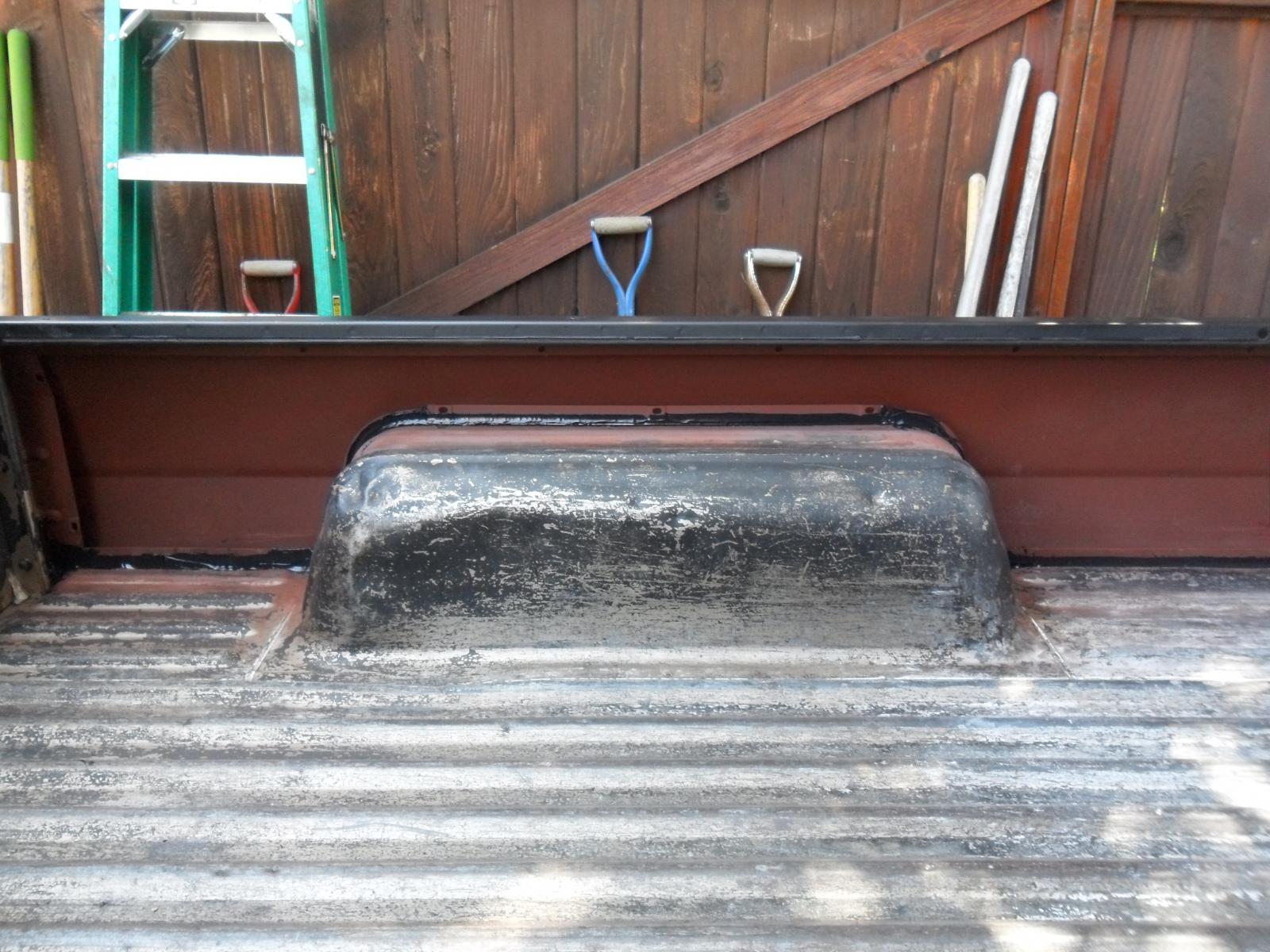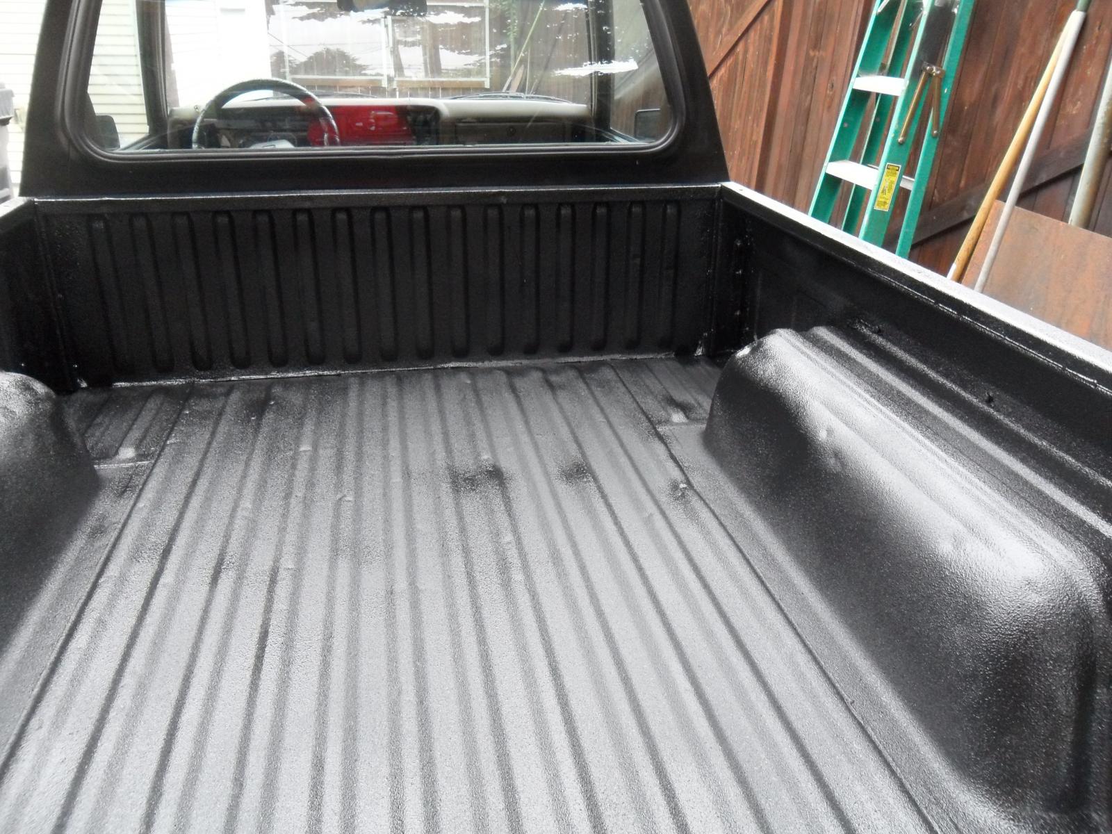 I have the same situation, someone painted the bed with something that is peeling off. The original paint is underneath, except in some spots where a bed liner wore it off and some surface rust has settled.