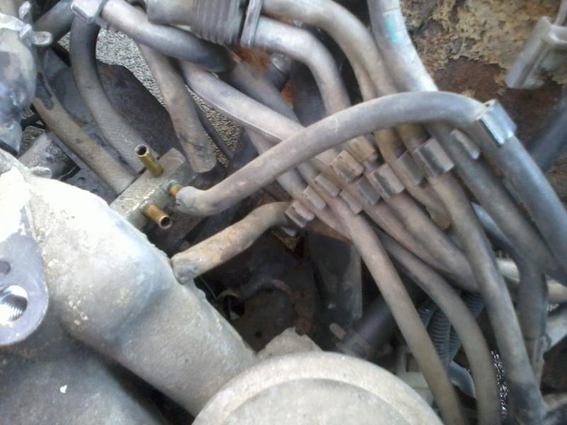 a pic with the exhaust manifold. u can see the far back stud is missing. apparently one of the guys before me had broke it but with some soaking down with PB blaster everything came apart nicely.
