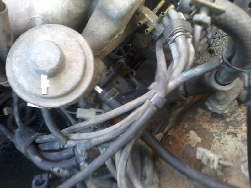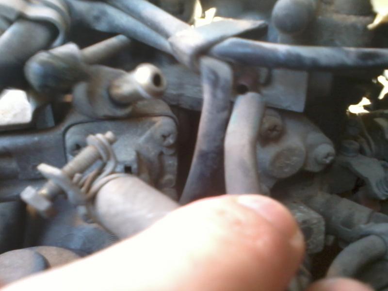 a pic with the exhaust manifold. u can see the far back stud is missing. apparently one of the guys before me had broke it but with some soaking down with PB blaster everything came apart nicely.