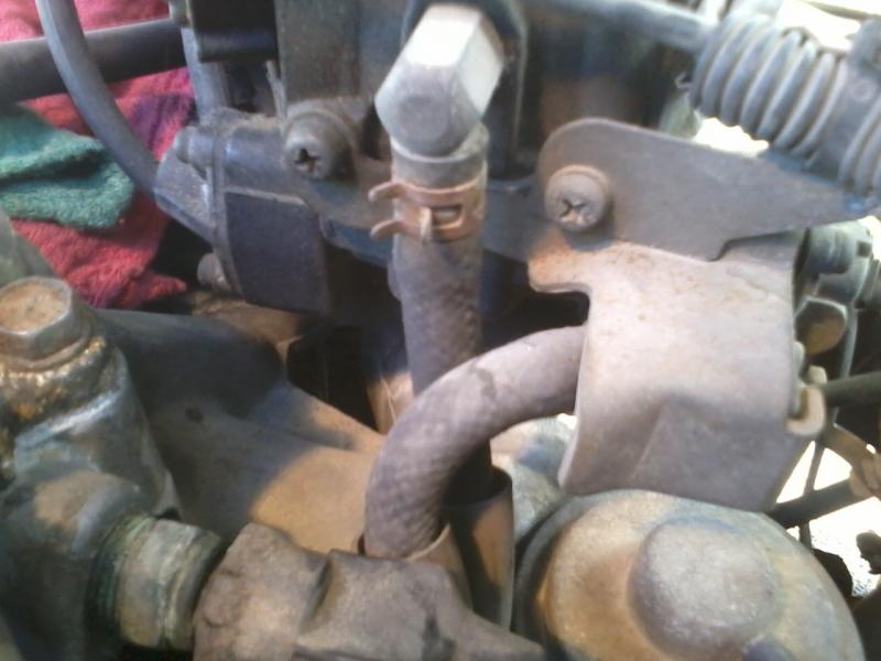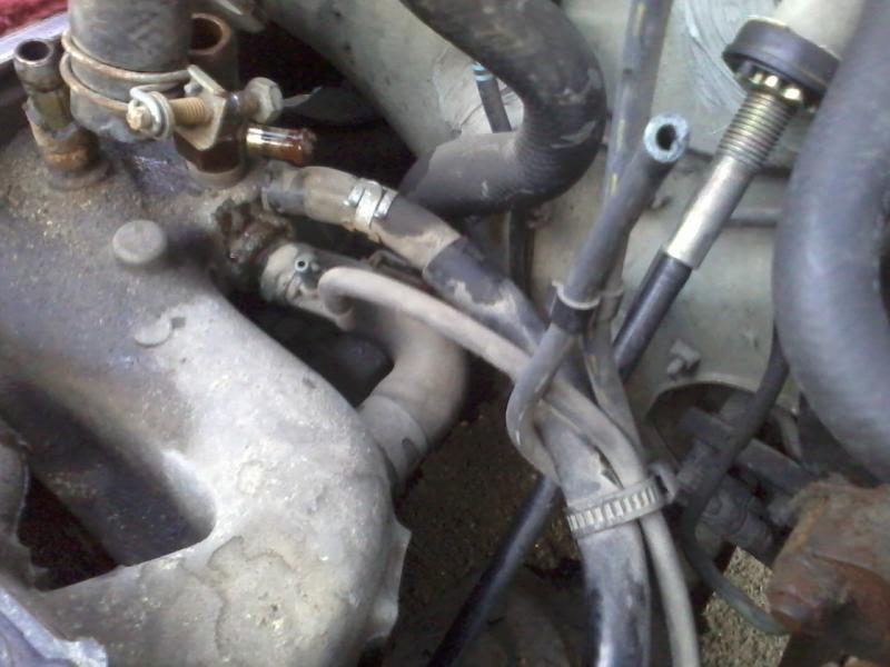 a pic with the exhaust manifold. u can see the far back stud is missing. apparently one of the guys before me had broke it but with some soaking down with PB blaster everything came apart nicely.