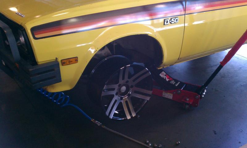Alright, so after many retarded mechanical questions that you guys have so happily answered for me, I finally have a much funner question at hand today. I am looking at these rims and tires, but they weren't the rims I originally invisioned. I originally wanted to do a 6 or 7 spoke 17"x8" all black rim. The biggest delema I have about this is that once I saw one on the vehicle, it made me think twice about my original plan. Anyway, here are the pics from the shop.