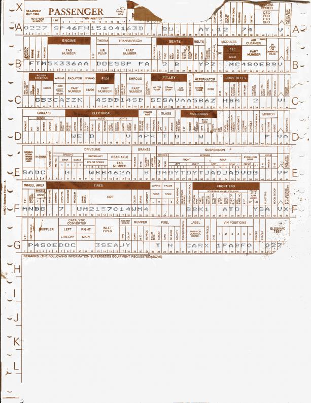 Ordered the factory build sheet for our 1985 Ford Thunderbird.