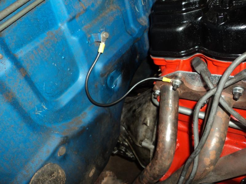 made a new ground wire out of 10 gauge wire to go to the exhaust post. realized afterwards that i may get some smoke from that yellow plastic cover touching the header plate