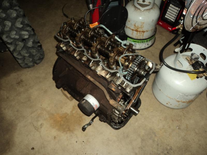here's the motor out of the blue dodge. i'm not quite sure why the person that owned this truck before me put a dipstick in the oil pan.