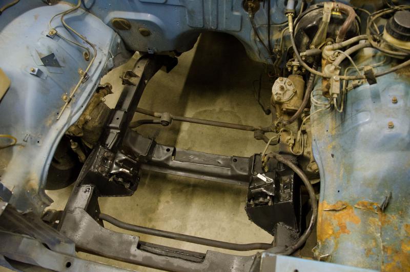 Tranny cross member again easy 3"x 1/2" flat bar lined up with the factory frame holes and a piece welded to line up the TH400's mount. There should be pic's of some of what I'm talking about in my build post. hope this helps it's looking good so far, keep it up.