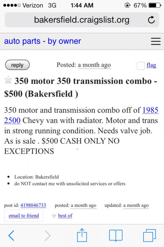 I was going to go with a Chevy small block, but after adding up all the parts I would need it isn't worth it.