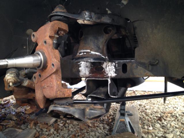 I dropped my truck 5/6 awhile back and of course now its not low enough. So I did a lot of research and got a game plan for bagging my mighty max. I know that there is going to be a learning curve and that not everything goes as a planned. So my plans aren't set in stone. I started first by getting the truck up in the air so that I could trim the crossmembers and tuck the exhaust up into the frame. Next i went out to harbor freight and bought a carport. We've been really busy at work and can't afford to tie up a bay so I'll be doing the work out back. The weather just started to break so its time to get to work. I got parked the truck out back and took the bed off so I could get my measurements for my 3 link bars. This weekend I'm gonna try to get out there and and start stripping down the rear of the frame.