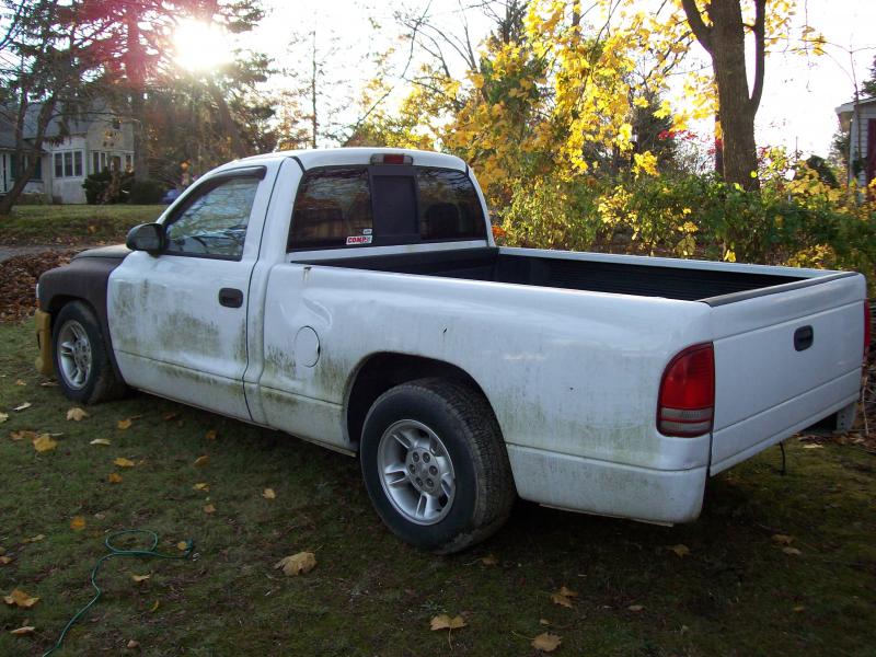 This is my Dodge Dakota that I bought brand new in 2000. As soon as I got it I static dropped it 5/6 and threw a system in it. Needless to say my parent weren't too happy with me voiding the warranty immediately but I wasn't worried about that. I drove it for a few years like that. Then as a result of my stupid behaviors I had to sell the truck to a friend. I lost my license a few times and racked up a lot of points so I couldn't afford the insurance. Five years later I got the truck back destroyed(see pics) through a trade for my 92 Isuzu pickup. I only paid a grand for Isuzu so I thought I got a deal until I got the truck home, it need a lot more than I expected. But it only turned 30k while it was gone. So I fixed it up mechanical and did the bodywork and paint only to wreck it a month later on the highway. So that's when I decided to go all out and shave everthing and make it what I really wanted it to be. As of now its my daily driver until I get my mighty max done. Here's a run down of what I done.