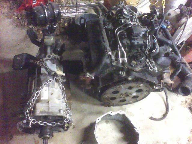 Ok everybody I found an engine and trans for the build out. It's a 97 Chevy 4.3 V6 Vortec, and the trany is a Tremec T56 6 speed. I found a guy on Craigslist that had the engine. Went to there place up in the foot hills. He had a tweeky friend with the trany. The first thing he asked me, "are you a cop" I guess they herd the scanner in my truck. They wanted $1500.00 for the set but, with some negation and them thinking I was a cop. I told them I would give them $450.00 and I would forget what they were cooking in the shed out back. You should have seen the look on there face when I said that. They thought they were going to get busted right there on the spot. But I told them I wasn't a cop until tomorrow morning. They were happy to get me a receipt load the stuff in the back of my truck and get me out of there real fast. Little did they know that I just look like a cop. Or if they would have read the side of the truck they would have see it said On Site Concrete Inc. with a phone number. Here is a pict of the parts. You just got to love a tweeker.