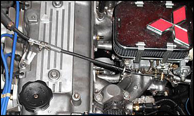 The other side right of the valve cover to the breather filter on the carb .