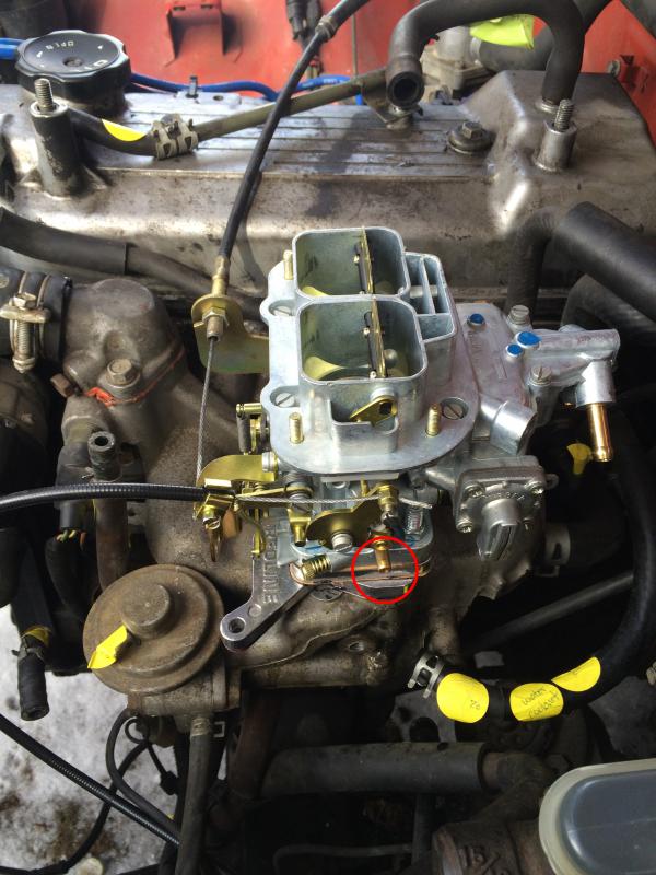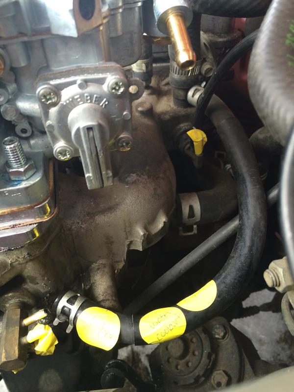Hard to tell from the picks, but if it is a nipple on the intake, it gets plugged off. The factory carb was heated by engine coolant, but the Weber is not. It has to be plugged.