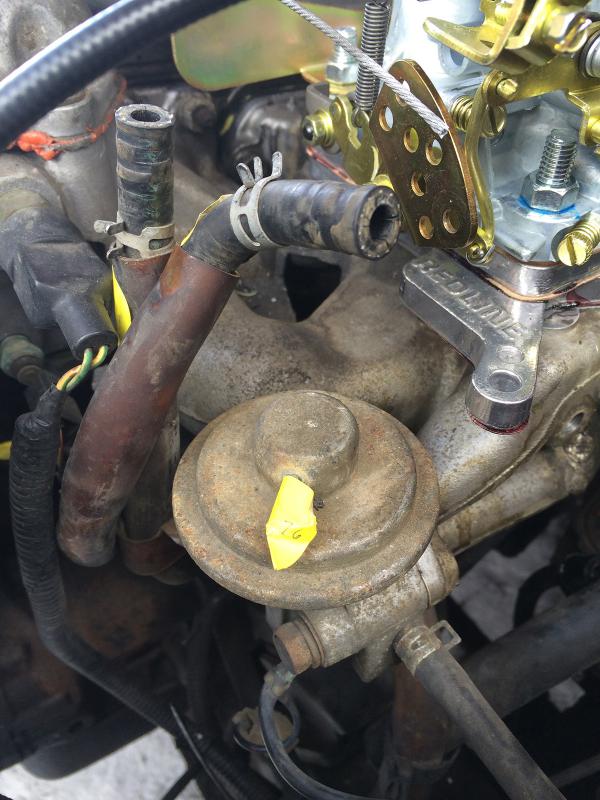 Hard to tell from the picks, but if it is a nipple on the intake, it gets plugged off. The factory carb was heated by engine coolant, but the Weber is not. It has to be plugged.