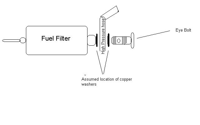 OK! Got it almost figured out... there were two copper washers. One stayed on the end of the eye bolt that I took off. The other I found on the ground after everything was disassembled. My question is - do the washers go on both sides of the high pressure hose when I slide the eye bolt back through the hose fitting and into the filter? That's what I assumed. But, the area around that 2nd washer - where the eye bolt goes into the filter leaks just a drip every 25-30 secconds. damn... do they both sit together on the outside end of the eye bolt? Hope that was a good enough explanation of my problem. I could draw a diagram if needed. Thanks!