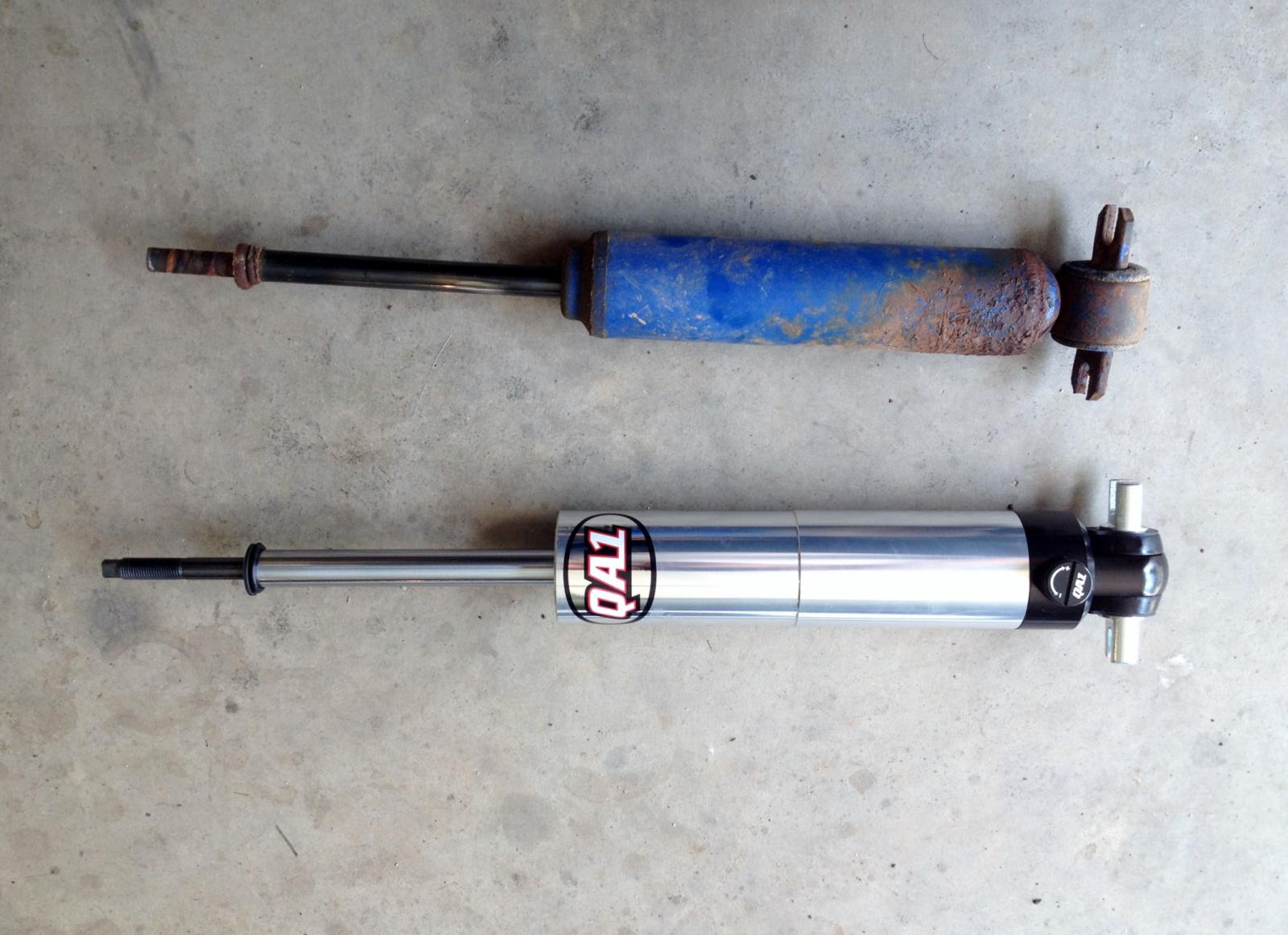 For the front I got some custom QA1 adjustable shocks, 2" drop spindles, Montero big front brakes, 6 to 5 lug adaptor and Enkei PF01 17x8 wheels.