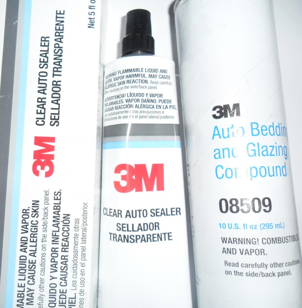 The instructions they send says to use 3M glazing compound (96-8509-96) on the area just outside the pinch weld. and then they say to use 3M auto clear sealer (96-8551-96) between the rubber and the glass on the outside after it is in.