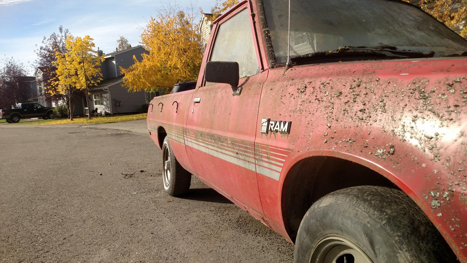 Been wanting to build something cool and unusual and have always had a fancy for mini trucks built for racing like the Datsun Sunny they had on Jay Leno's Garage. So i went up to Fairbanks and picked this up for 200 bucks. Debating about putting a Weber on the factory G63b or swapping something in like a turbo v6 or replacing the head with a DOHC, I'd like to hit around 200hp. But thought I would start a build thread for conversation's sake so here she is! 1986 Dodge Ram 50, Last receipt i found in the glove box was from 1996 so I'm assuming she has been sitting for around 20 years or so.