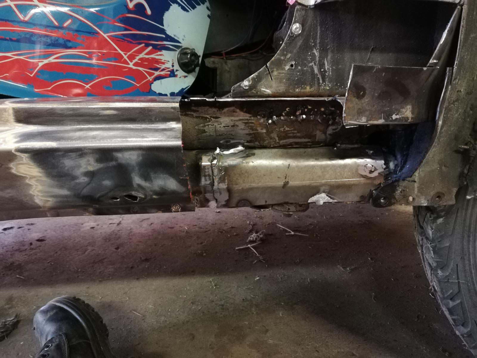 Just 2 spot welds and some tar holding this corner to the chassis.