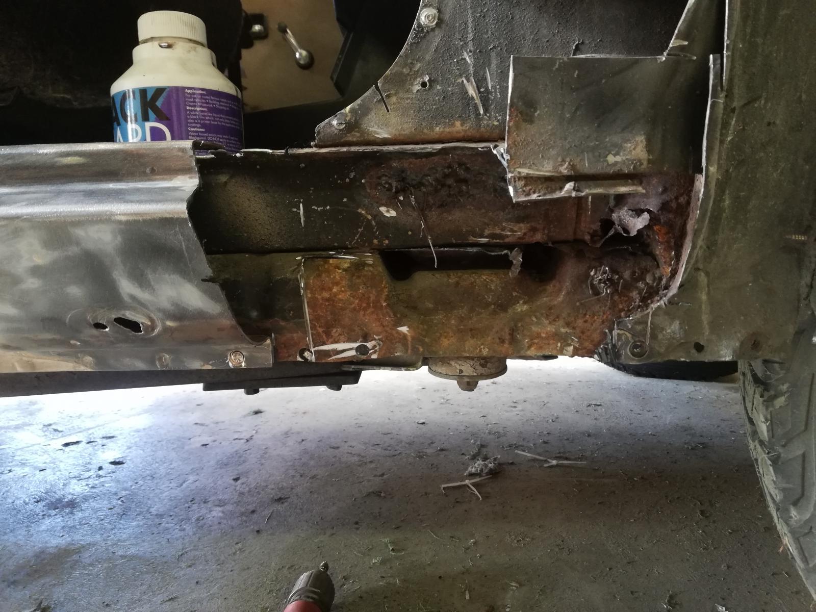Just 2 spot welds and some tar holding this corner to the chassis.
