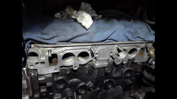 - picking up the gasket and reinstalling the intake manifold