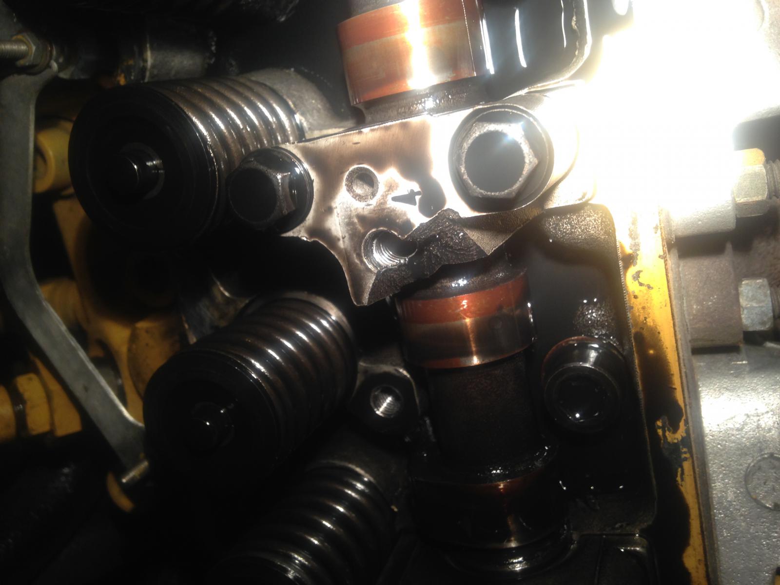 I then remove the valve cover and begin to inspect. Cam cap 1 (very front with three bolts) and 4 (1 before the back) are cracked around the threaded portion for mounting the rocker arms.
