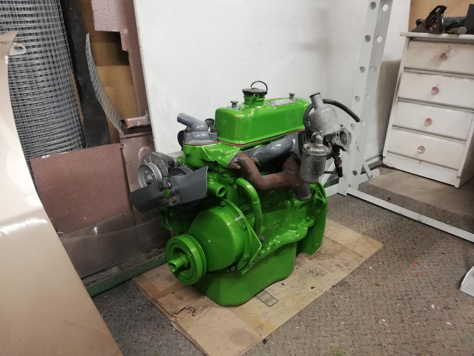 I cleaned everything up and thought hey I have an old tin of some kind of olive green. That's what it was sold to me as and the sploge of paint on the lid was kind of light but dull and green. Close enough to an old Morris engine.