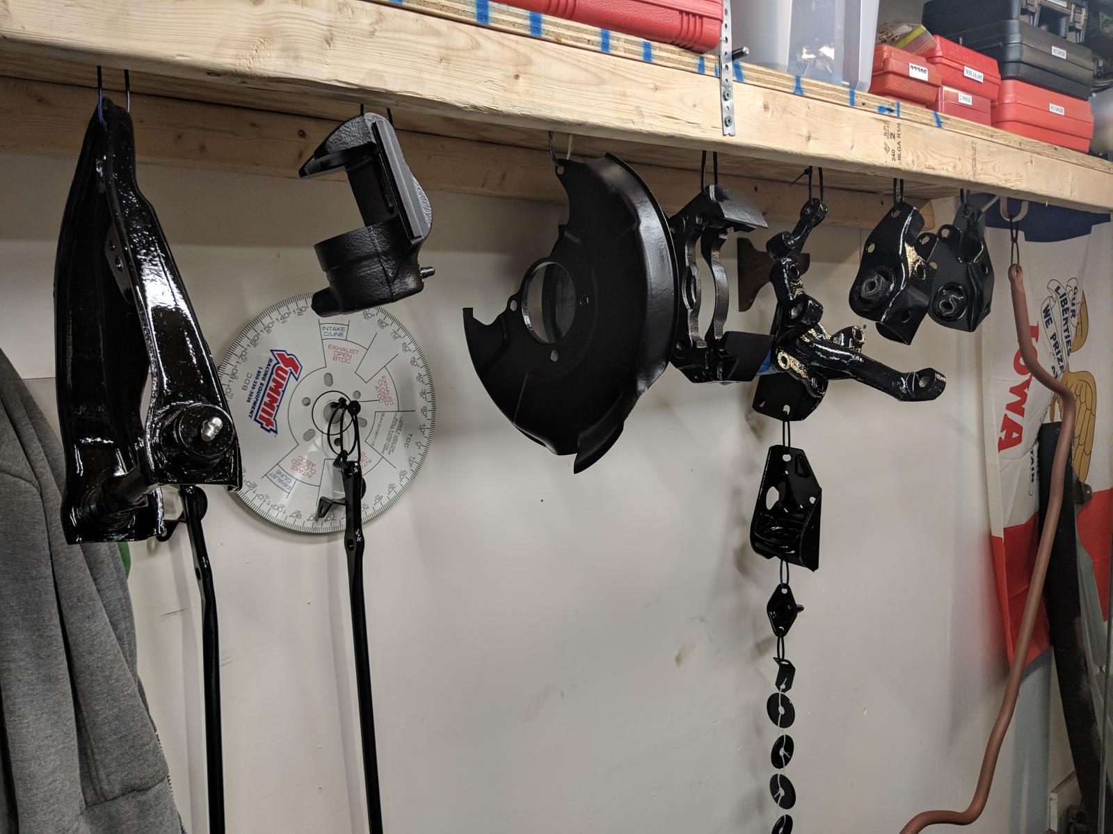 Not much to update on the build. I pulled the engine to finish up welding the motor mounts and radiator support. I then decided to start rebuilding the front suspension so when I drop the engine back in I can get a feel for ride height. Im just about ready to reassemble the left side. Something I was taught back when I sixteen on doing drum brakes always do one side at a time so you can use the other for reference. This is how I've taken the approach here. I have the service manual and my 84 mighty max also, but it's much simpler to just glance at the other side of the truck if I'm questioning fitment.
