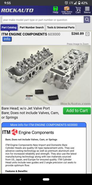 Currently I'm committed to trying this ITM head. Likely going to slap it on Thursday. If I have time I'll measure the combustion chambers and compare volume to find out if compression ratio will change. I'll report my results.