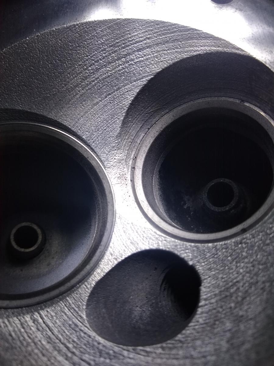 It's not the greatest picture, but that's a crack between the valve seats, and all of the work I've done to this head is all for naught.