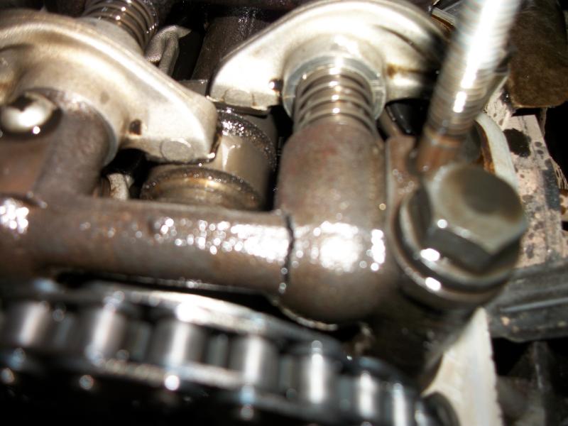 Haha, that would be cool. But I went ahead and took the valve cover off to see what was making all that chattering noise, and to my surprise the timing chain, sprocket, cam and rocker arms all looked like new, I have had a bad oil leak for some time so I went ahead and cleaned the valve cover while it was off. I started to check out the rocker arm gaps and I noticed cam tower 1 had a HUGE crack in it, not a hairline fracture like the mitsu had I mean I could stick a flathead screwdriver in there, so I found where the chattering noise is coming from. Here are some pics 100_2772.jpg100_2768.jpg100_2696.jpg