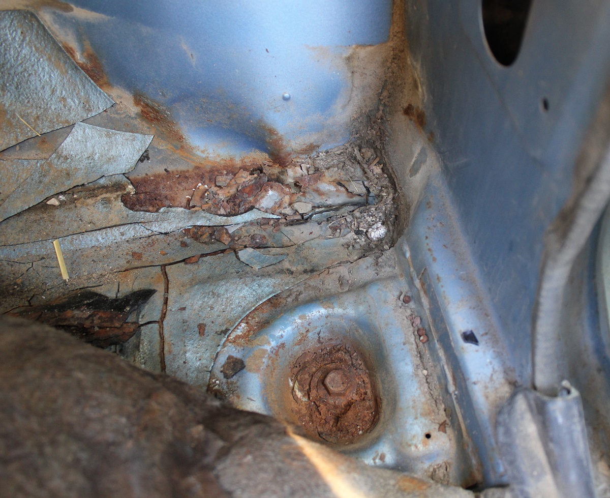 Well work started off great today. Starting cleaning everything. Got the bed powerwashed and started cleaning the interior. And then everything went south. I noticed some heavy water damage on the cardboard looking trim pieces by the door, and then spots of the floor felt kinda squishy. I was hesitant to remove the carpet, but i'm glad i did. As you can see i have some rust afterall. Guess i'll have to go talk to a repair shop after i get it fired up. I don't think its going to fall off or anything, but that much rust on the mounting spots is a bit more than i'm willing to gamble on.