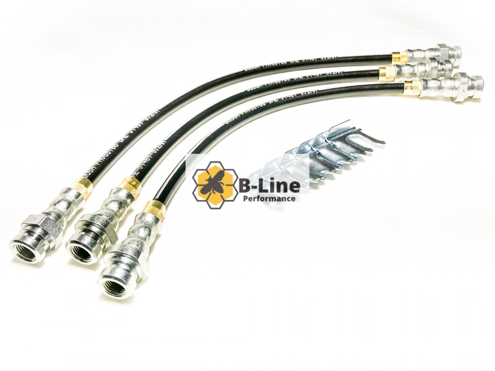 Why get B-Line Performance Stainless Steel brake lines? Our low expansion Teflon (PTFE) brake hose is reinforced with a 304 stainless steel braid and coated in a wipe-clean PVC cover. Braided Stainless Steel Lines experience much less expansion than rubber, giving you more precise braking, feel, and life. The smooth-bore PTFE core is compatible with DOT 3, 4, 5 (silicone-based), and 5.1 brake fluids, as well as oil and most other fluids. We also offer multiple colors for our PVC jacket. Our quality Braided Stainless Lines are made to last much longer than rubber and have numerous attributes that performance minded individuals seek out.