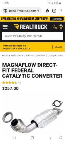 catalytic converter replacement plan (not a California CARB version) 1986 Power Ram50