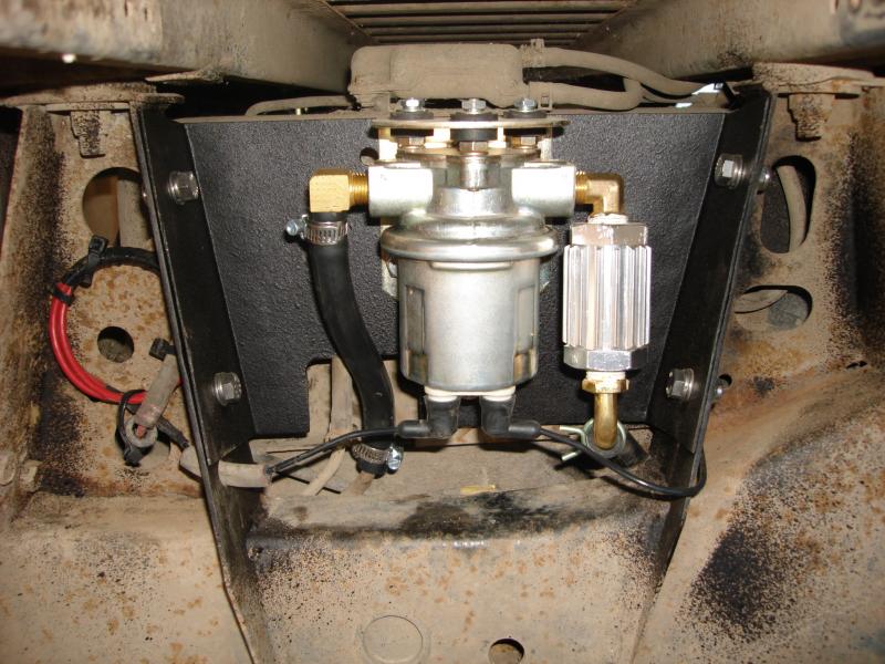 DSC00180[1].jpg DSC00181[1].jpg Here is pressure switches, left or top is safety switch for fuel pump other is just oil pressure. I put them up and angled for built in drain back feature didn't want switch(s) just sitting in oil, been working good so far.